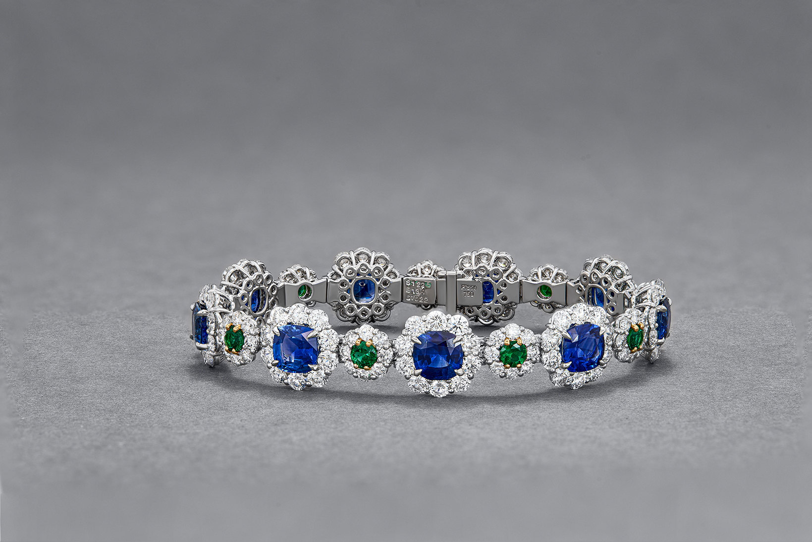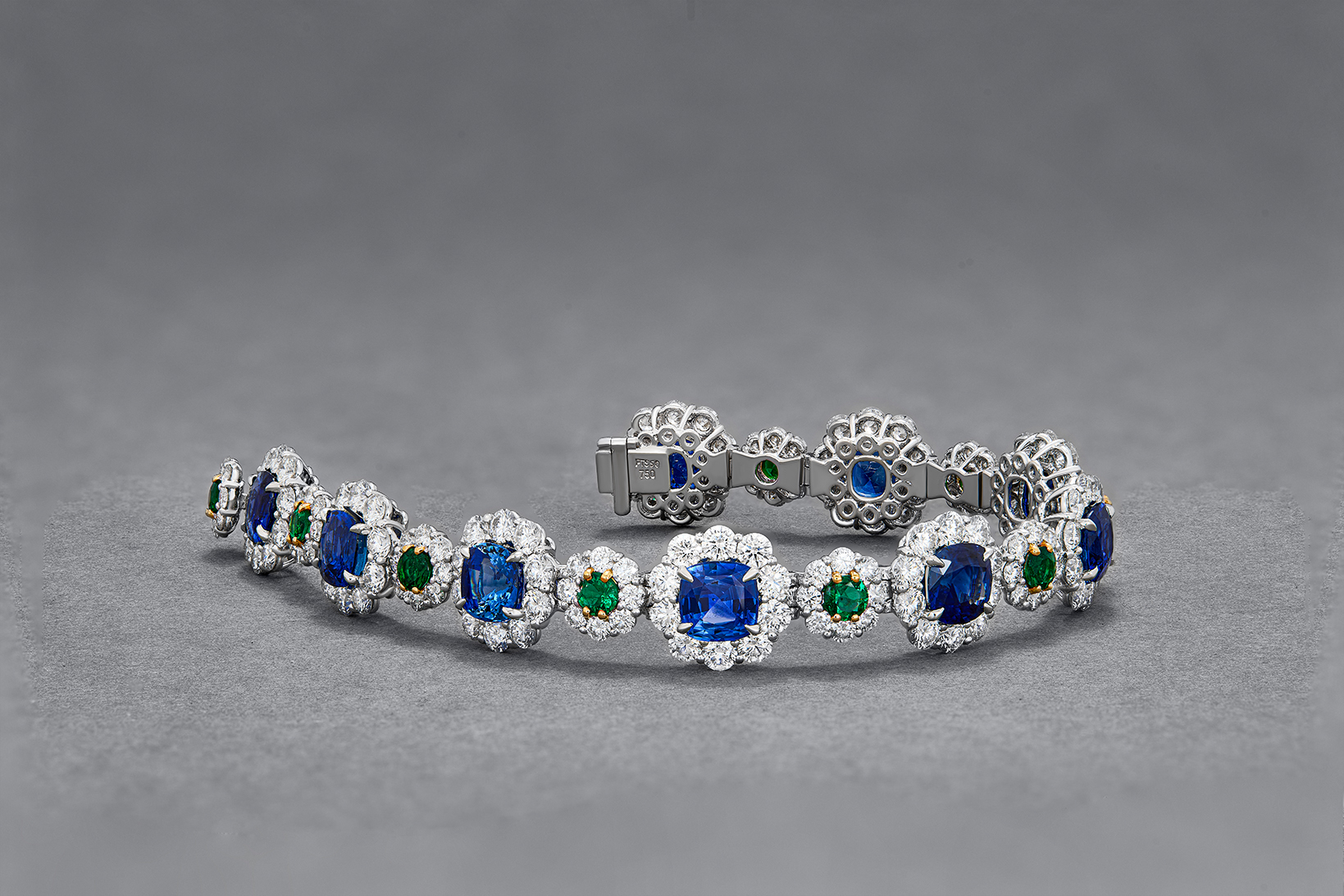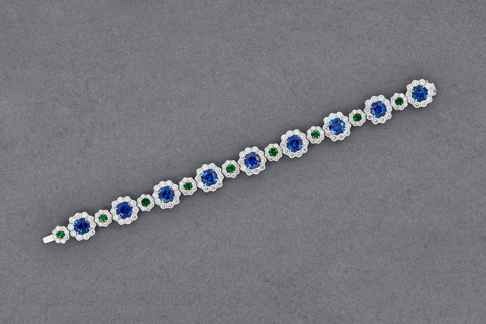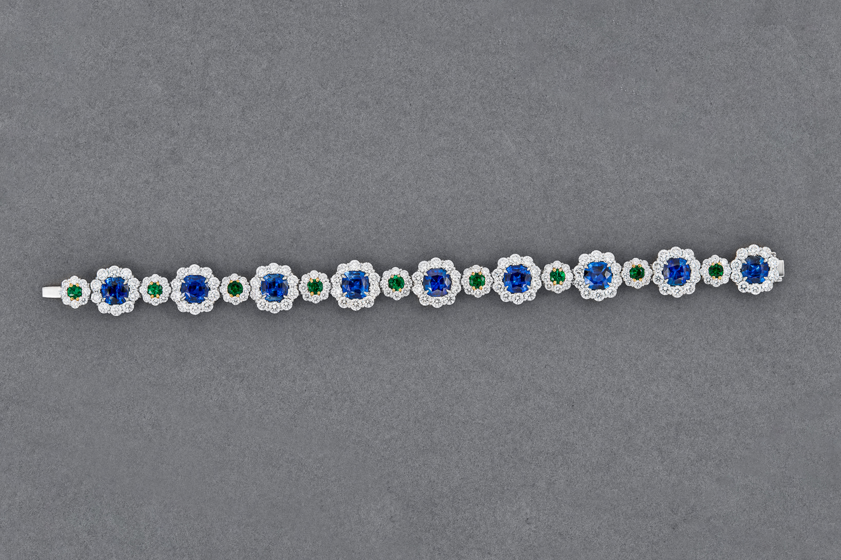 Cushion-cut sapphires totaling 12.25 carats set across 9 links form an elegant and timeless sapphire bracelet.