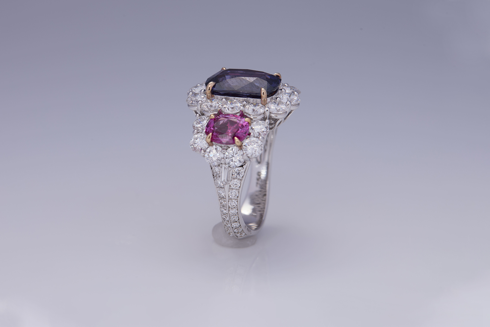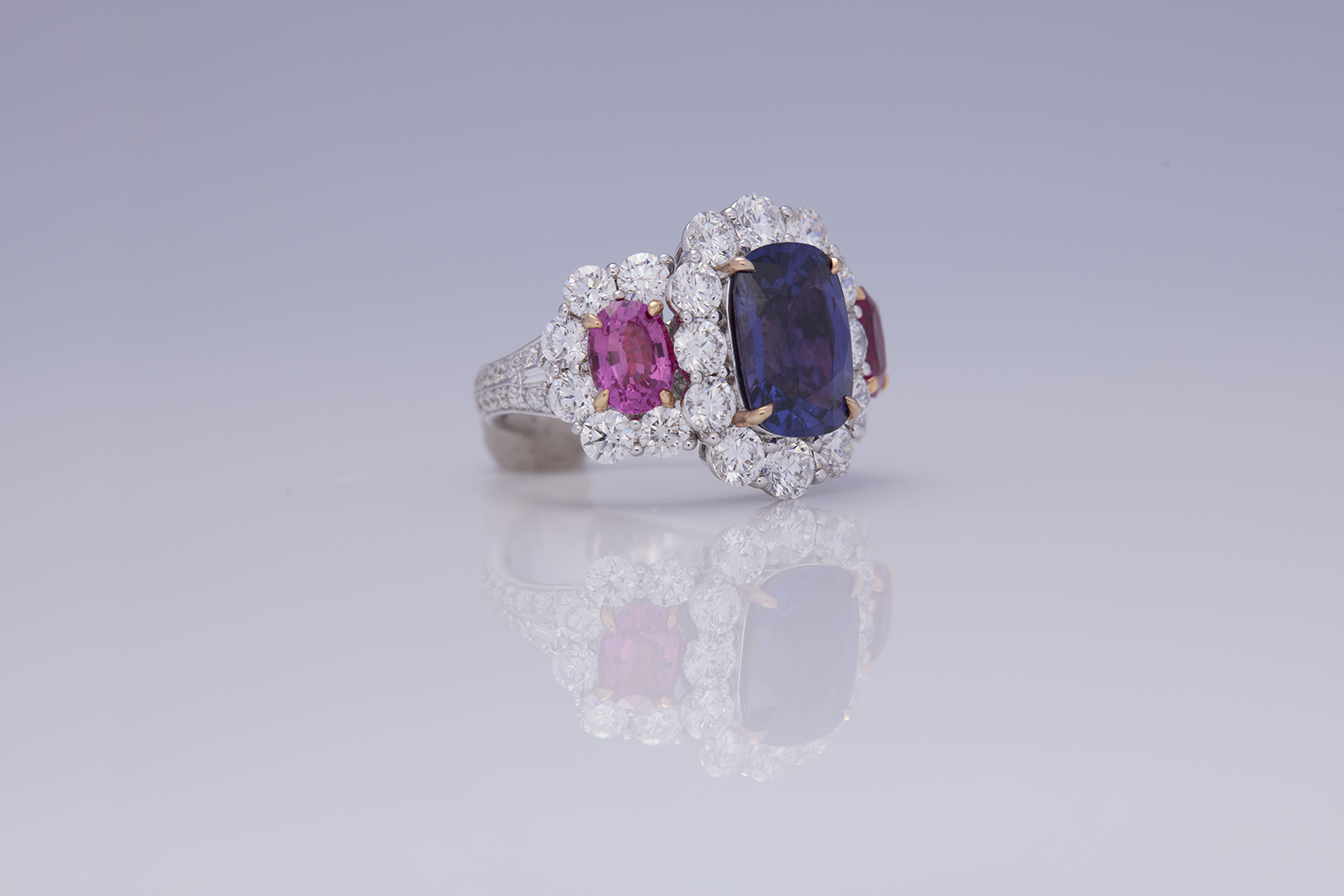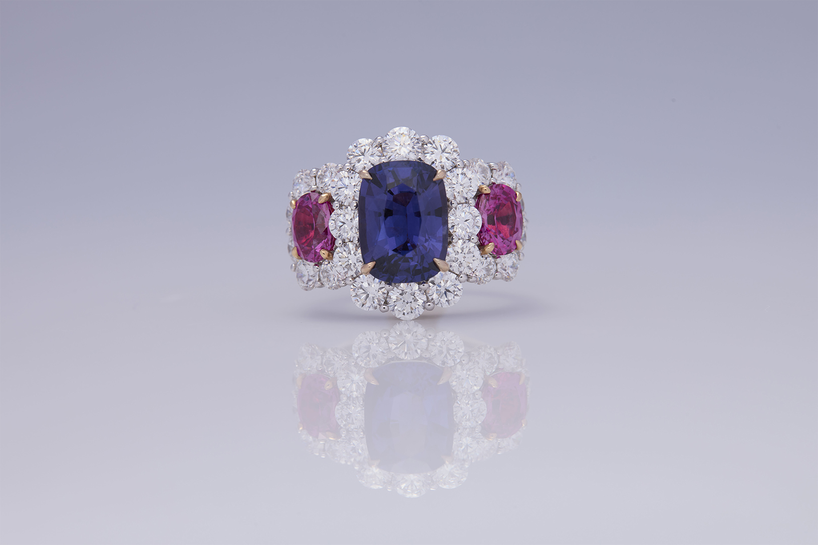 Cushion-cut 5.32ct Violet Sapphire ring, crafted for subtle elegance. Serial Number SR2246