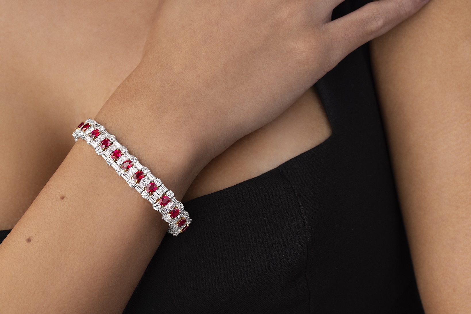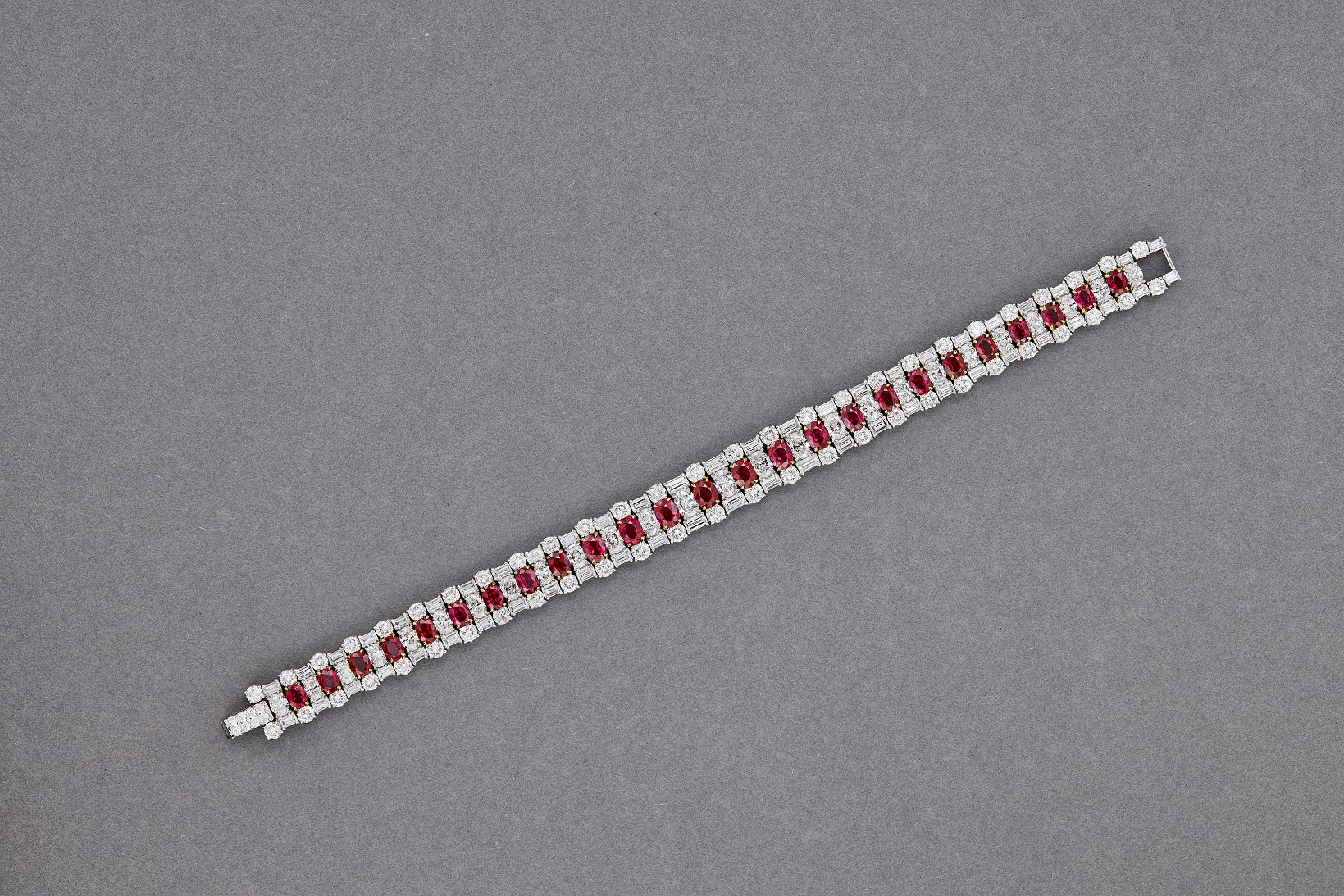 25 oval-shaped Rubies totaling 8.53ct in a bracelet that exudes rich red brilliance. Serial Number RB7016