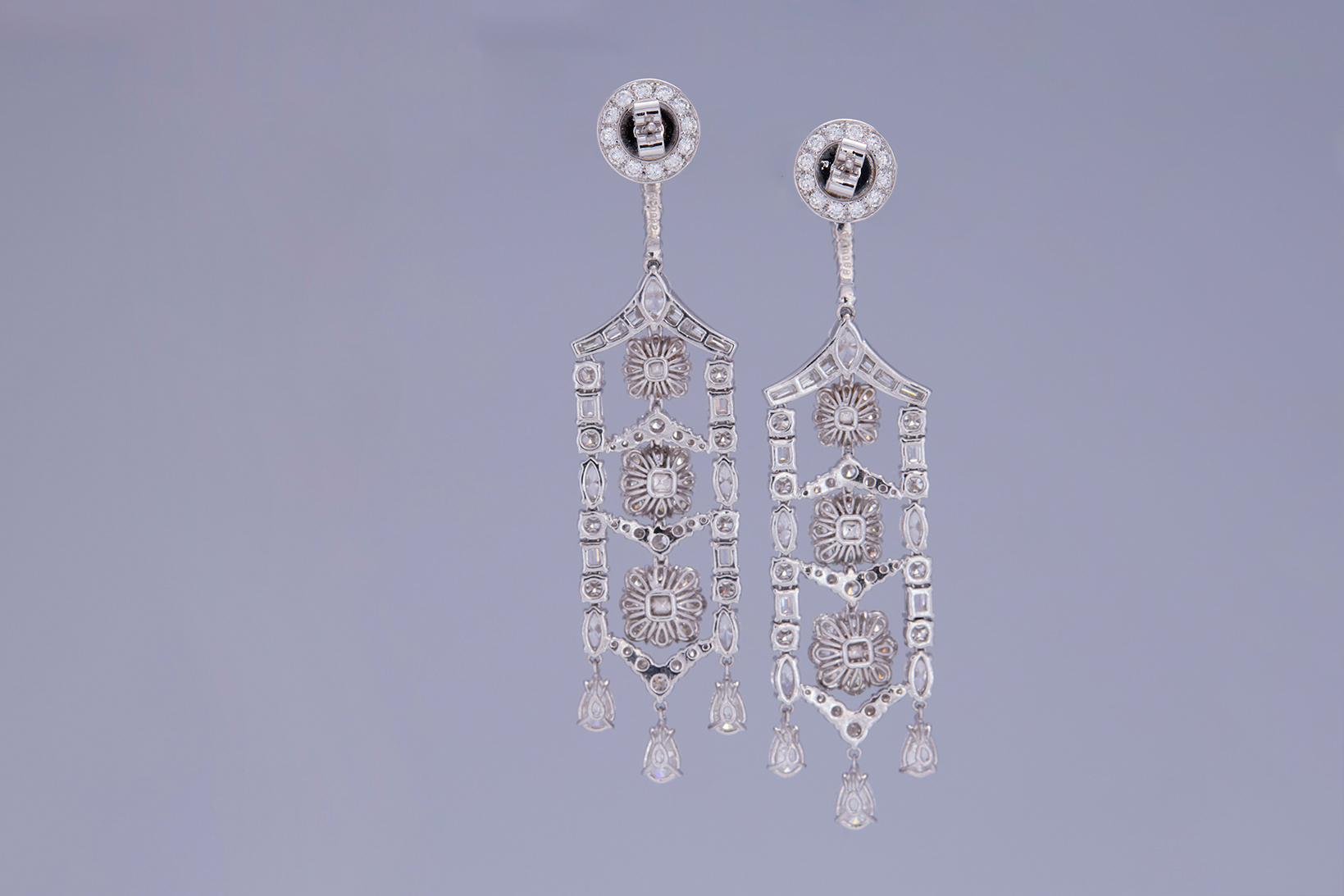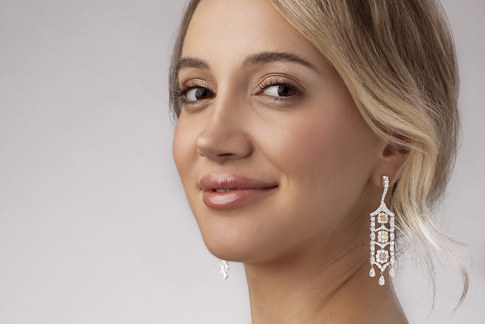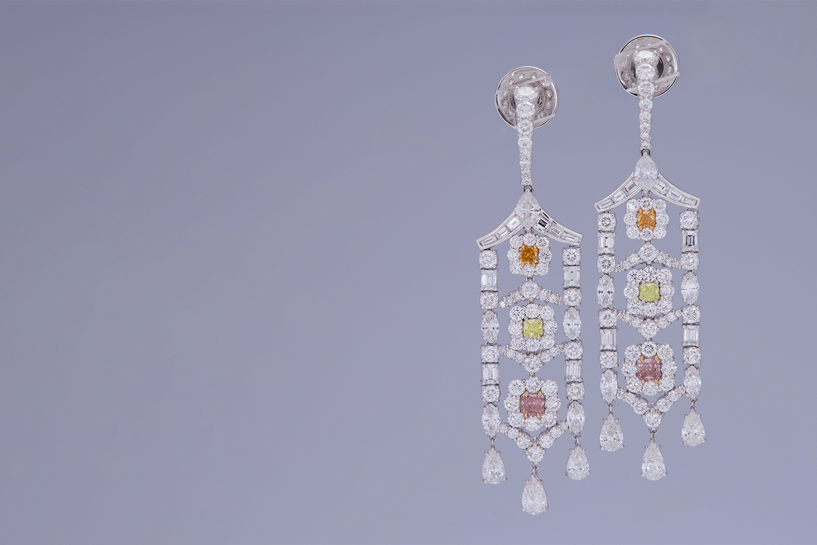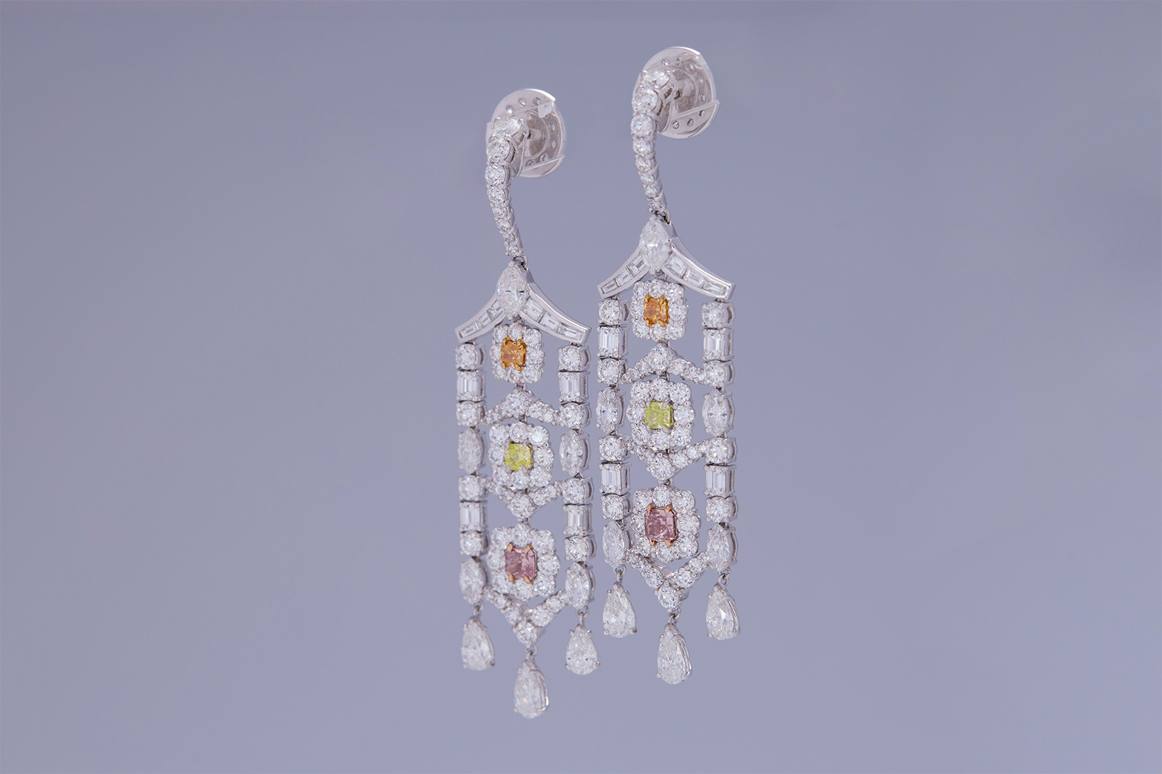 Radiant-cut Fancy Intense Orangy Pink diamonds (0.32ct & 0.25ct) in a vibrant earring set. Serial Number DE3278