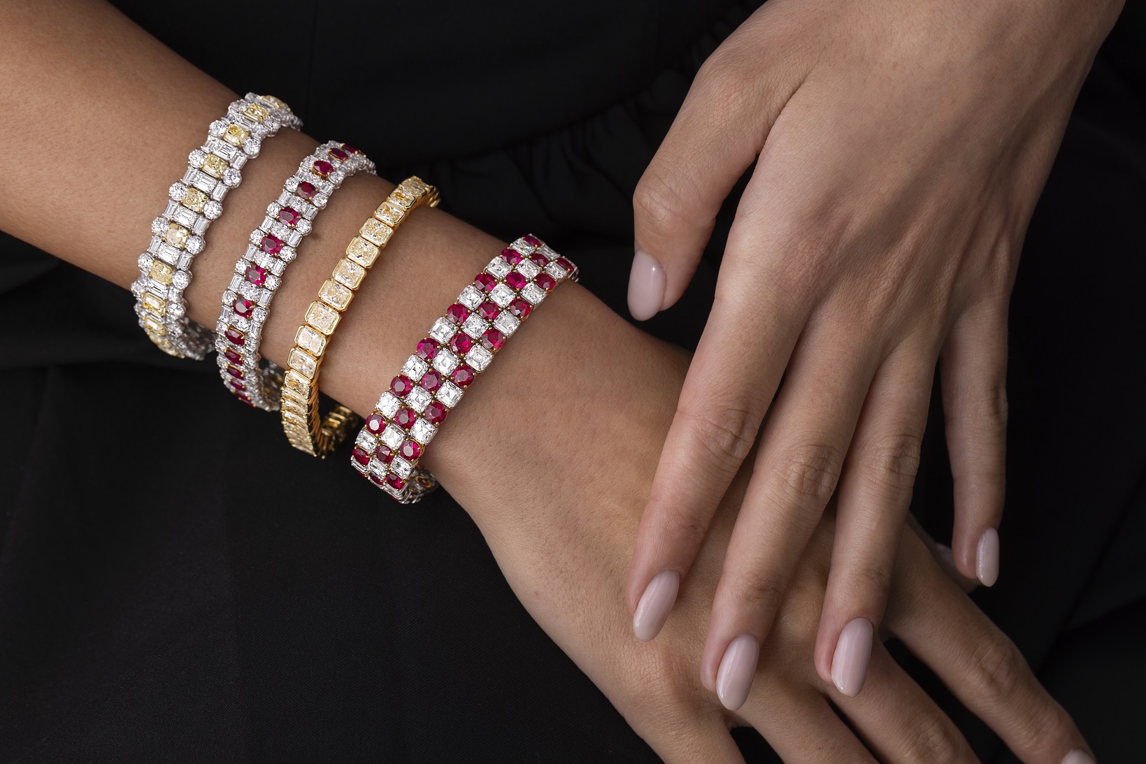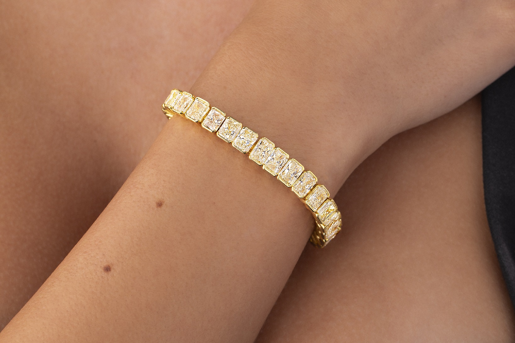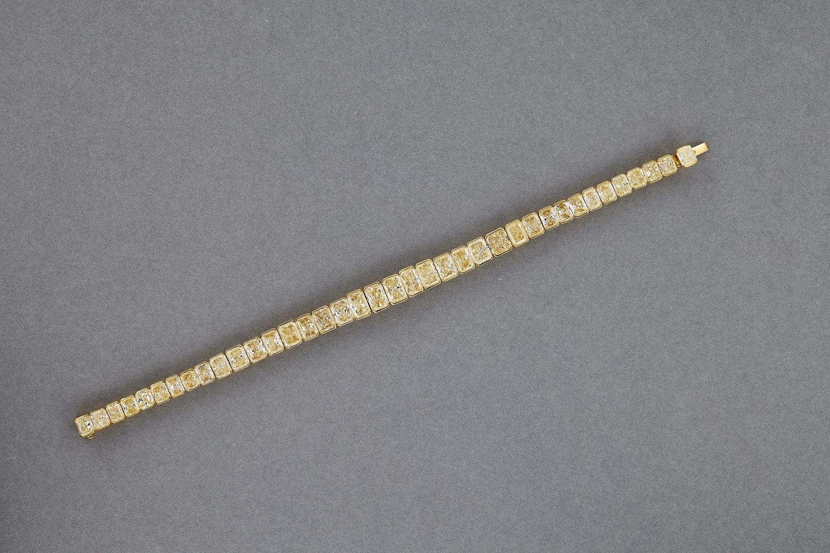 38 radiant-cut Fancy Yellow diamonds totaling 28.16ct crafted into a show-stopping bracelet.