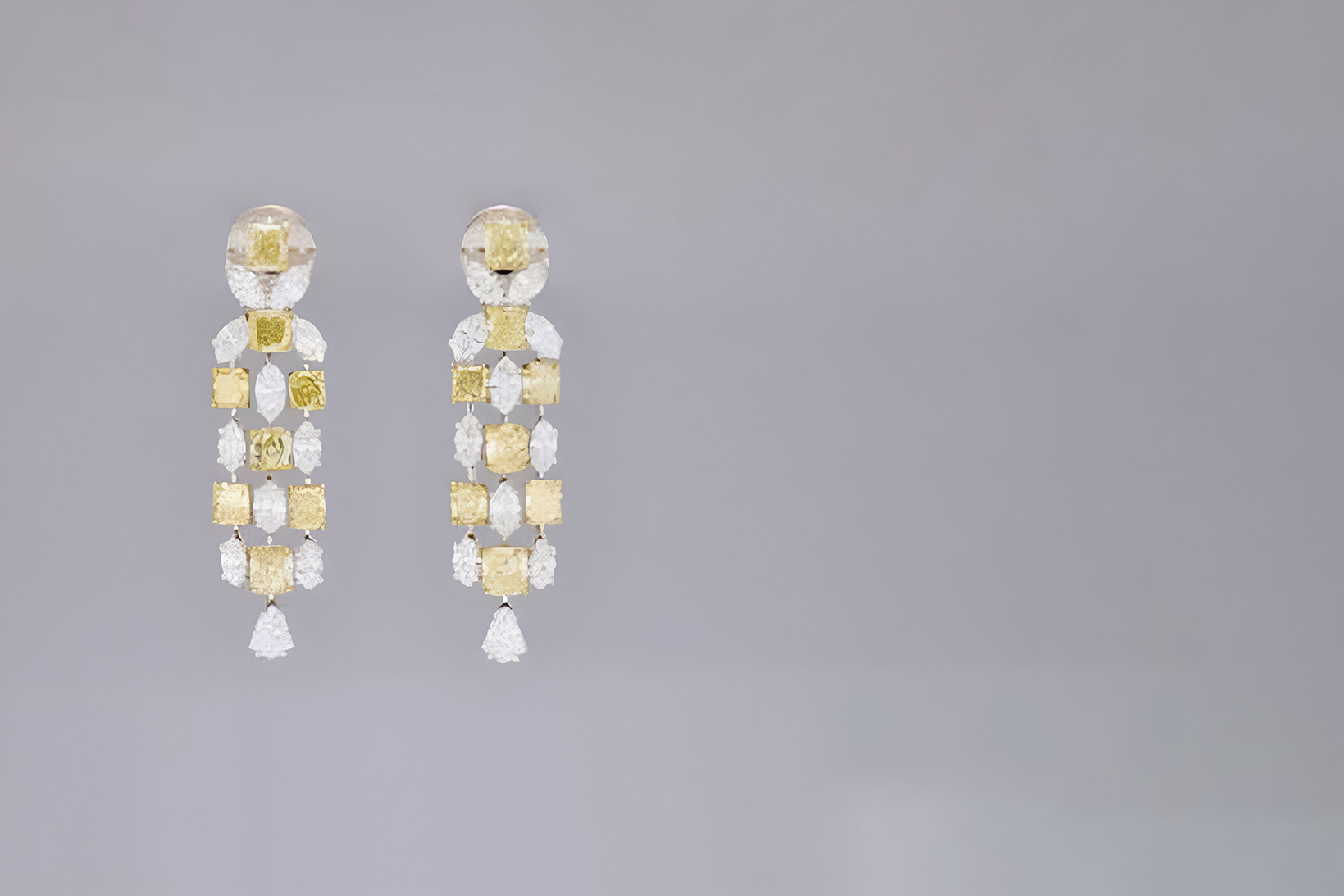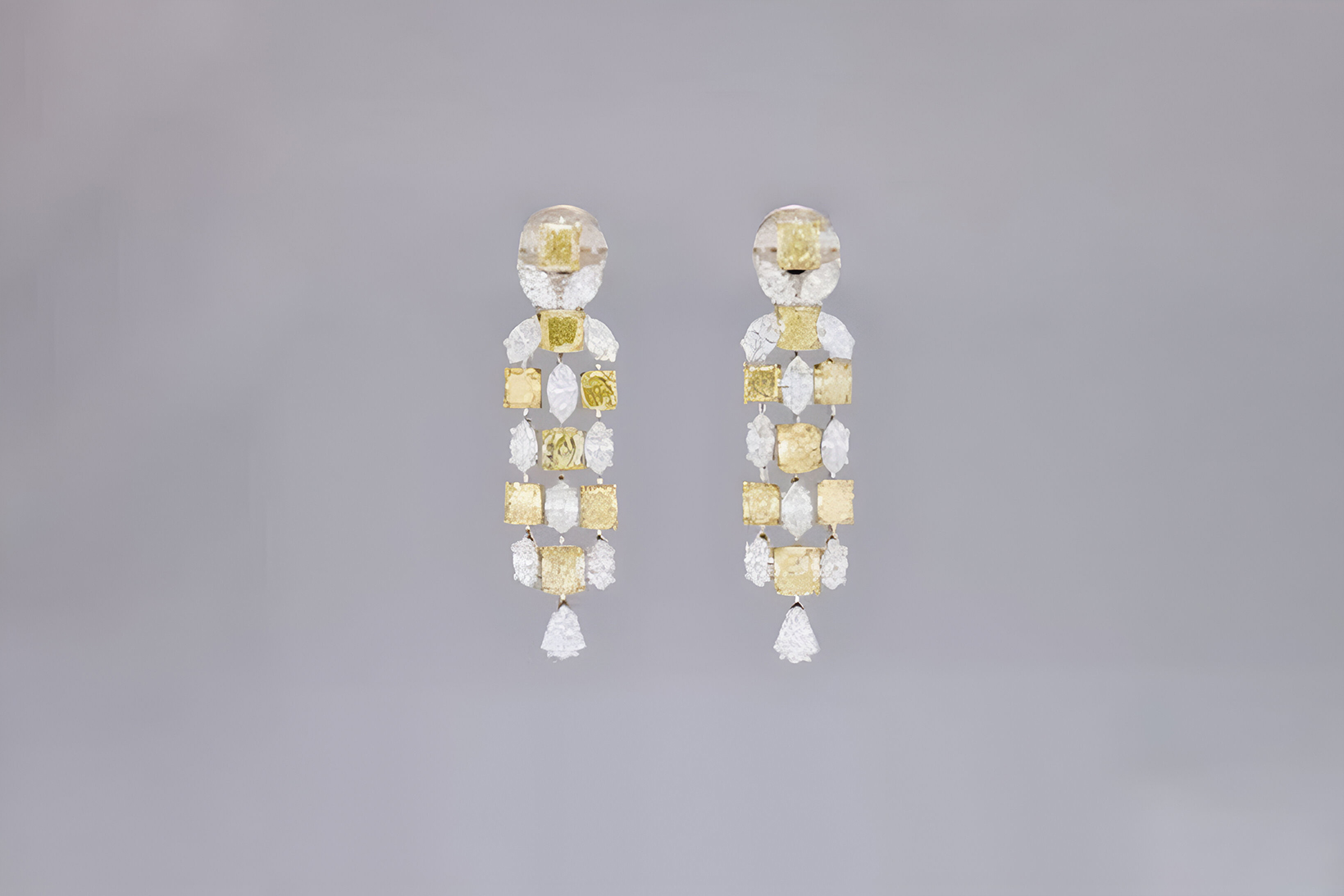 16 radiant-cut Fancy Yellow diamonds totaling 8.96ct in a luminous earring design.